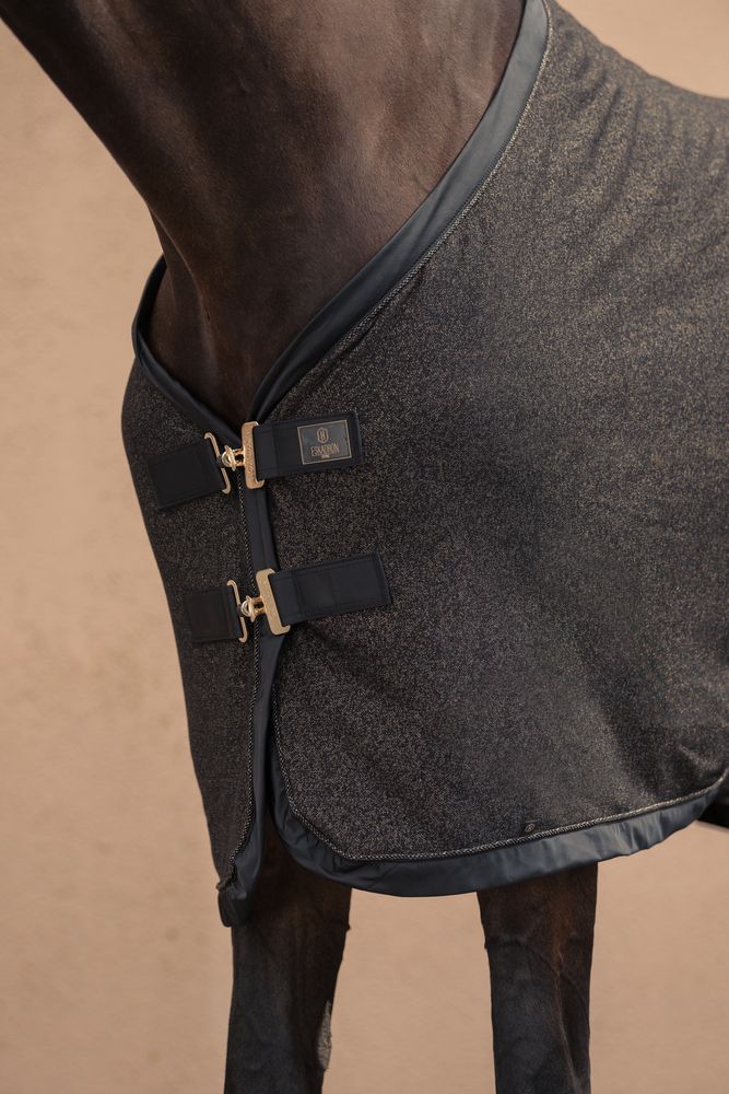 Die Jersey-/Baumwollabschwitzdecke Jersey Sparkle Heritage 24/25 aus der aktuellen Heritage Kollektion 24/25 vereint edles Design mit höchster Funktionalität. Dank ihres schimmernden Jersey-Obermaterials und der weichen Unterseite bietet die Decke optimalen Komfort für Ihr Pferd.
