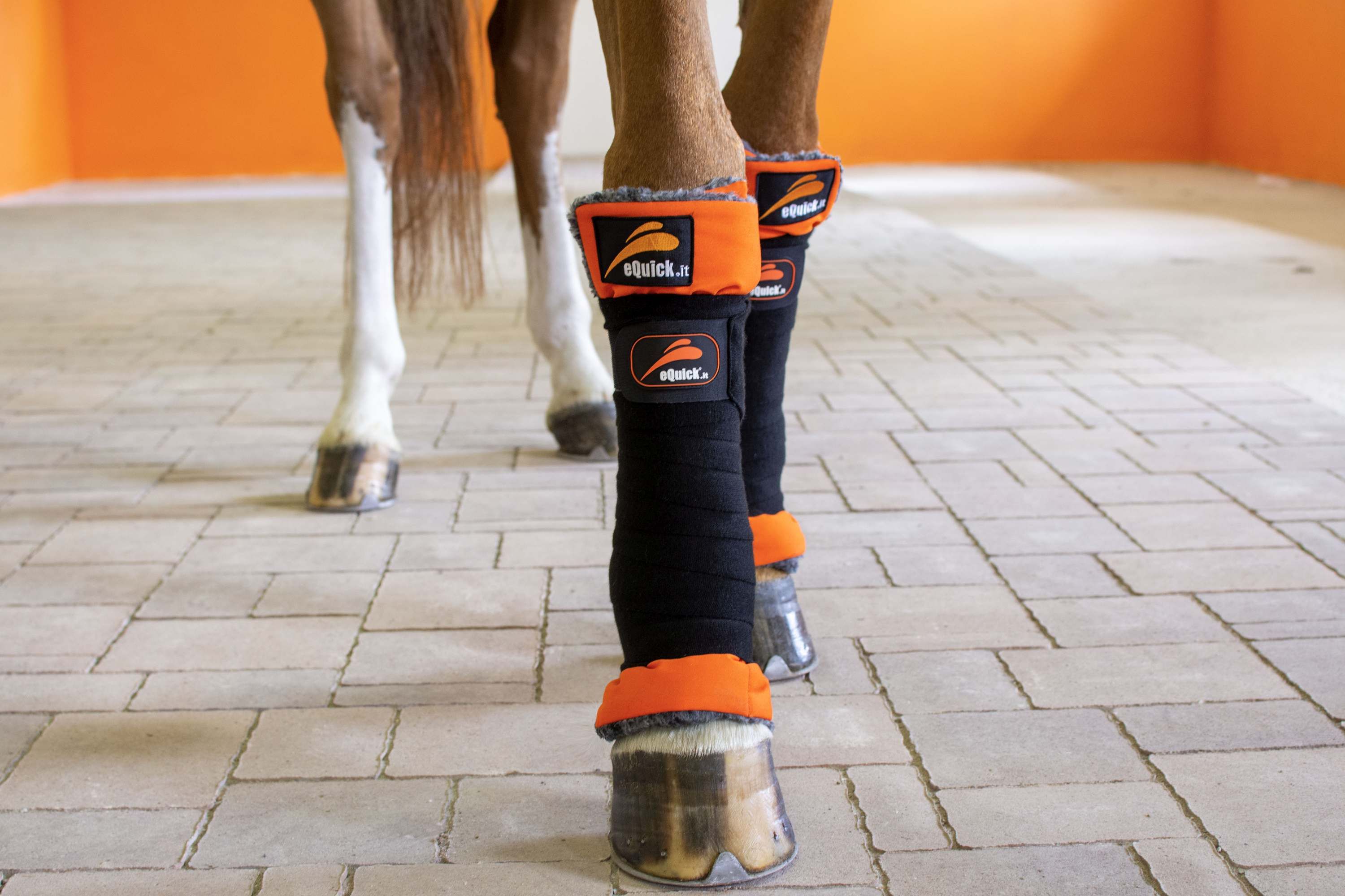 Das eKristal Set von eQuick bietet eine innovative Möglichkeit, Pferdebeine auf natürliche Weise zu unterstützen. Das Set enthält zwei Bandagen und zwei medizinische Bandagierunterlagen, die mit einer entzündungshemmenden Nano-Technologie ausgestattet sind und aktiv zur Schmerzlinderung, Heilung und Regeneration beitragen.
