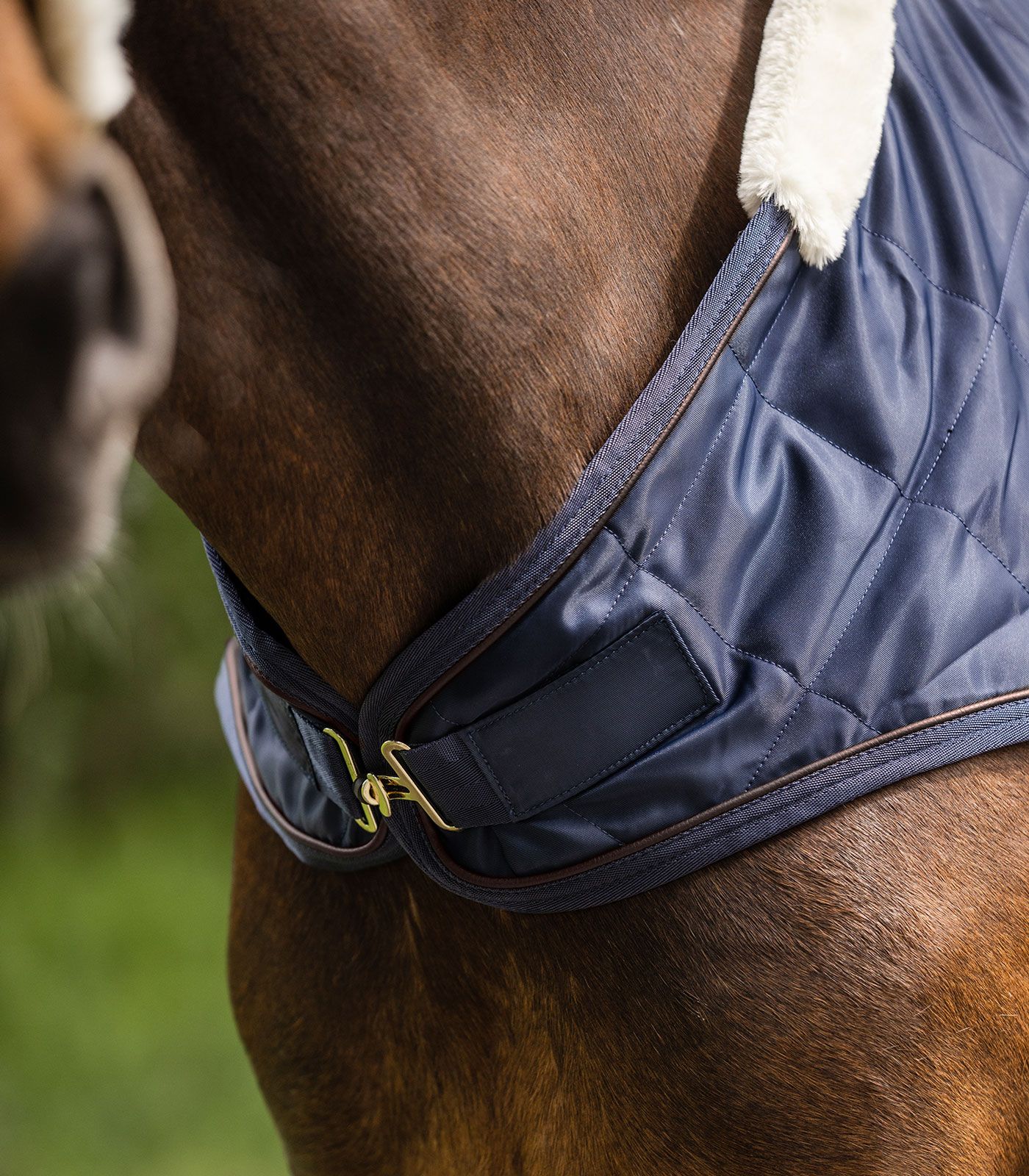 Die Führmaschinendecke EXCLUSIVE ist die perfekte Wahl für den Einsatz an kalten Tagen. Sie ist mit künstlichem Kaninchenfell gefüttert, das hervorragend die Körperwärme speichert und dabei besonders weich ist, um Scheuerstellen zu verhindern. Das Felldetail am Widerrist sorgt für eine gleichmäßige Druckverteilung und schützt vor unangenehmen Druckstellen.