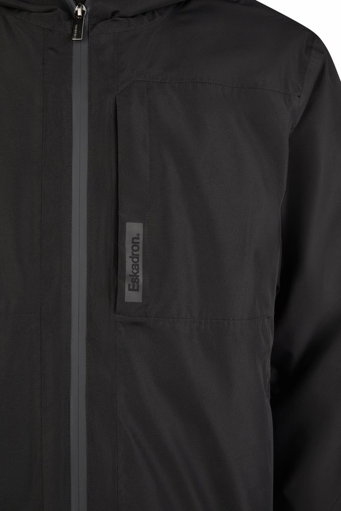 - Kapuze und Reißverschluss: Feste Kapuze mit Verstellmöglichkeit im hinteren Bereich sowie ein wasserdichter 2-Wege-Reißverschluss mit Kinnschutz.