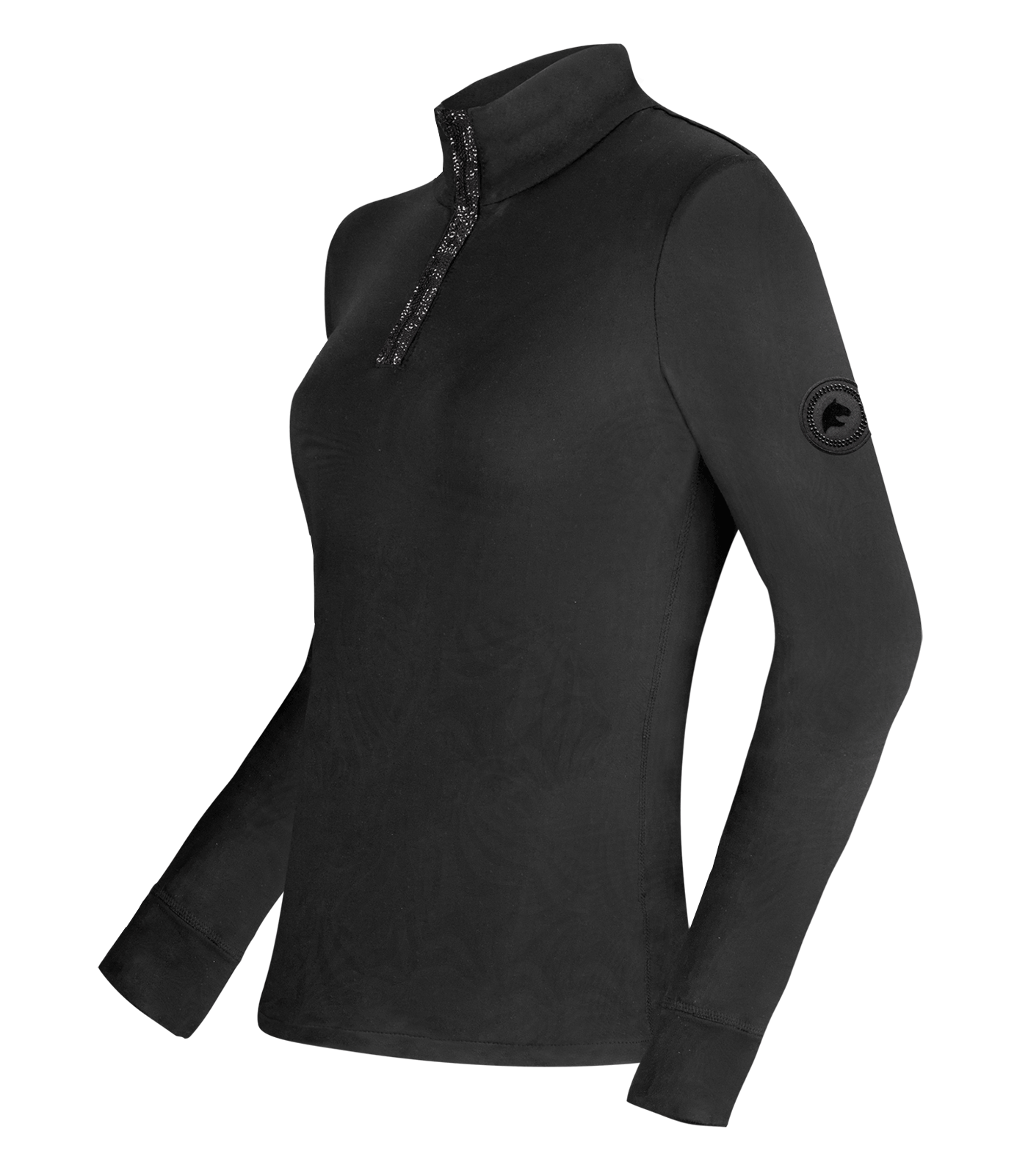 Das Funktionsshirt Esthal kombiniert modische Details mit technischer Leistung. Die atmungsaktiven und weich gefütterten Materialien sorgen für einen komfortablen Sitz, während die eleganten Glitzersteinchen und Pailletten das Shirt zu einem echten Hingucker machen. Es ist die perfekte Wahl für aktive Reiterinnen, die sowohl im Stall als auch bei Ausritten eine gute Figur machen wollen