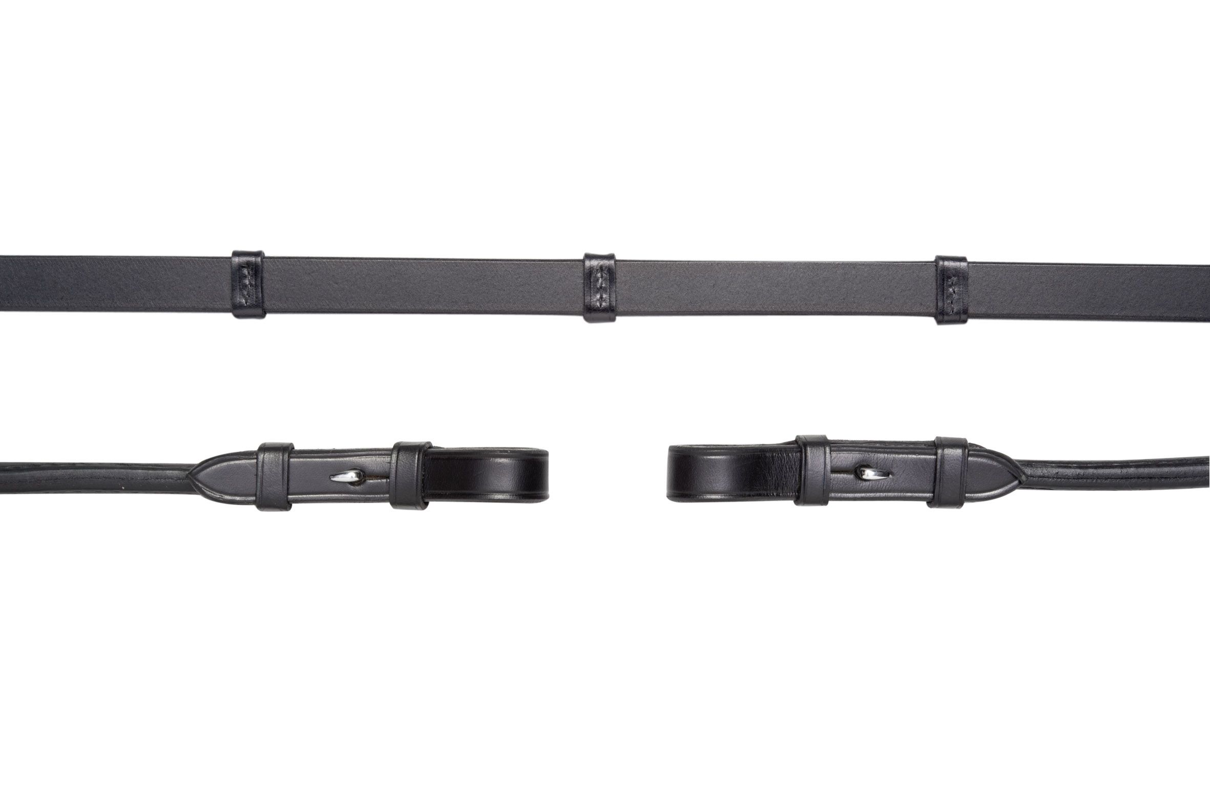 Für zusätzliche Griffigkeit und Kontrolle ist der Zügel mit eingearbeiteten Lederstegen (Stopps) versehen, die auch bei feuchtem Wetter sicheren Halt bieten. Die Zaumhaken ermöglichen eine schnelle und unkomplizierte Befestigung am Gebiss. Mit einer Breite von 16 mm liegt der Zügel besonders gut in der Hand und eignet sich ideal für den täglichen Einsatz sowie für Turniere.
