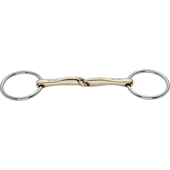 Das Mundstück besteht aus Sensogan, einer hochwertigen Legierung aus Kupfer, Mangan und Zink, die für eine beste Verträglichkeit und erhöhte Akzeptanz sorgt. In Kombination mit rostfreien Edelstahlringen garantiert dieses Gebiss Langlebigkeit und Funktionalität.