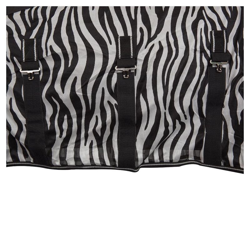 Die Unterseite der Decke besteht aus 100 % Polyestergewebe mit Zebramuster – wissenschaftlich erwiesen zieht dieses weniger Fliegen an und bietet so einen natürlichen Insektenschutz.