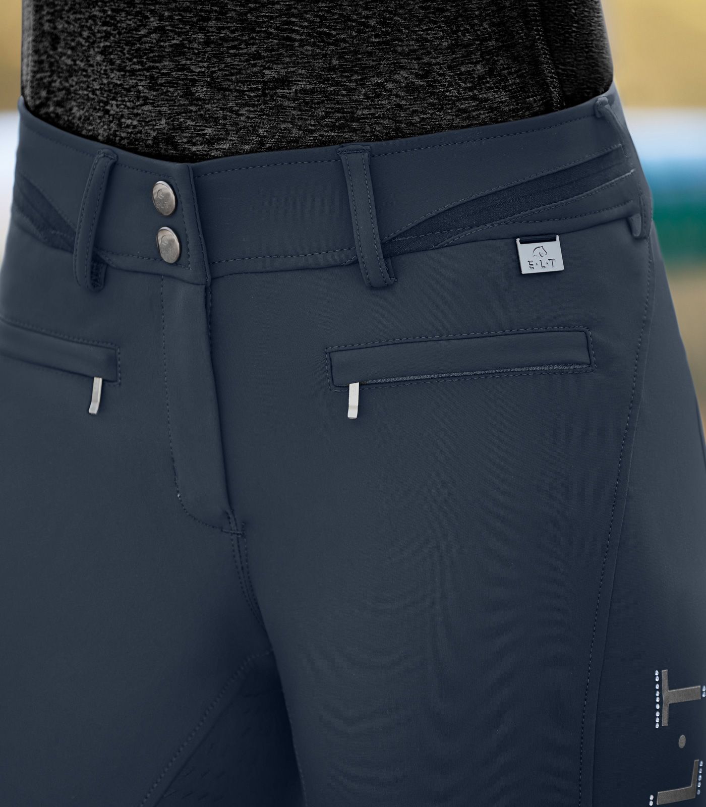 - Dekorativer E·L·T Schriftzug am linken Oberschenkel für zusätzlichen Style