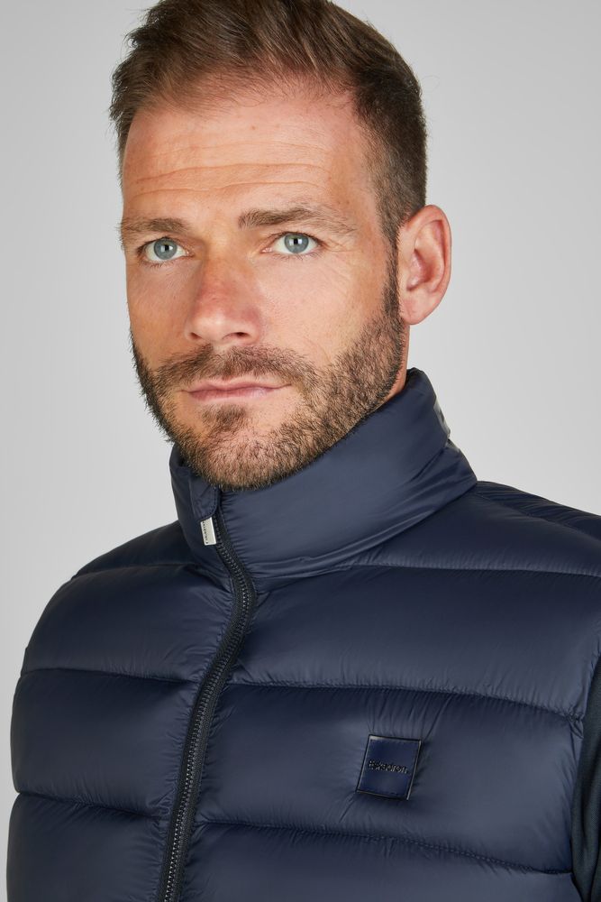 - Stylische Optik: Gesteppte Weste in eleganter Mattgloss-Optik mit hohem Stehkragen, verziert mit einem Ton-in-Ton Eskadron-Print auf der Rückseite.