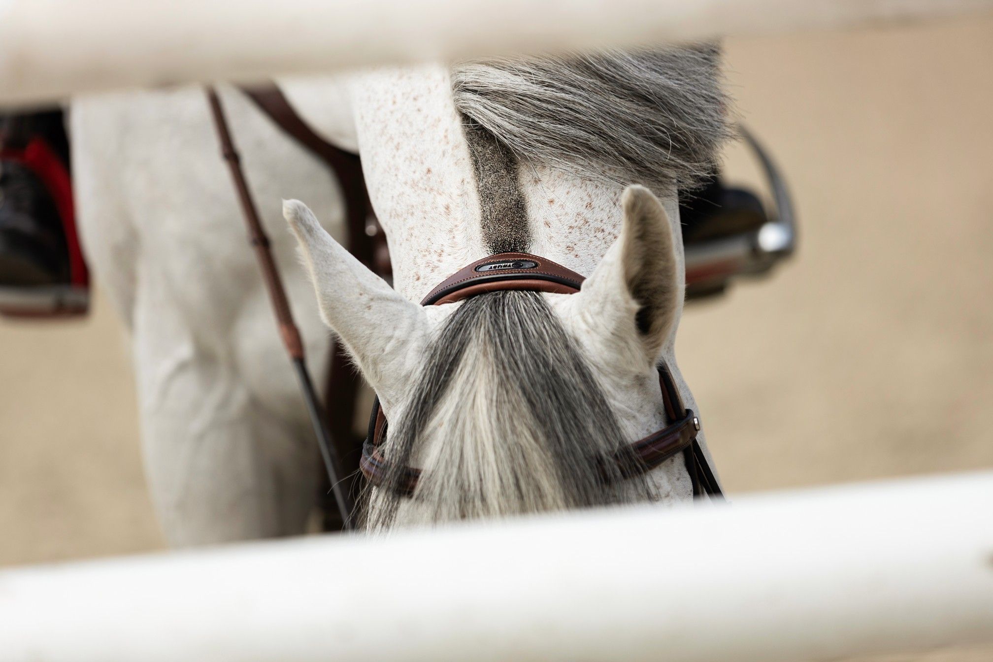 - Gerader Stirnriemen mit Zierstickerei: Verleiht der Trense eine elegante und klassische Optik.