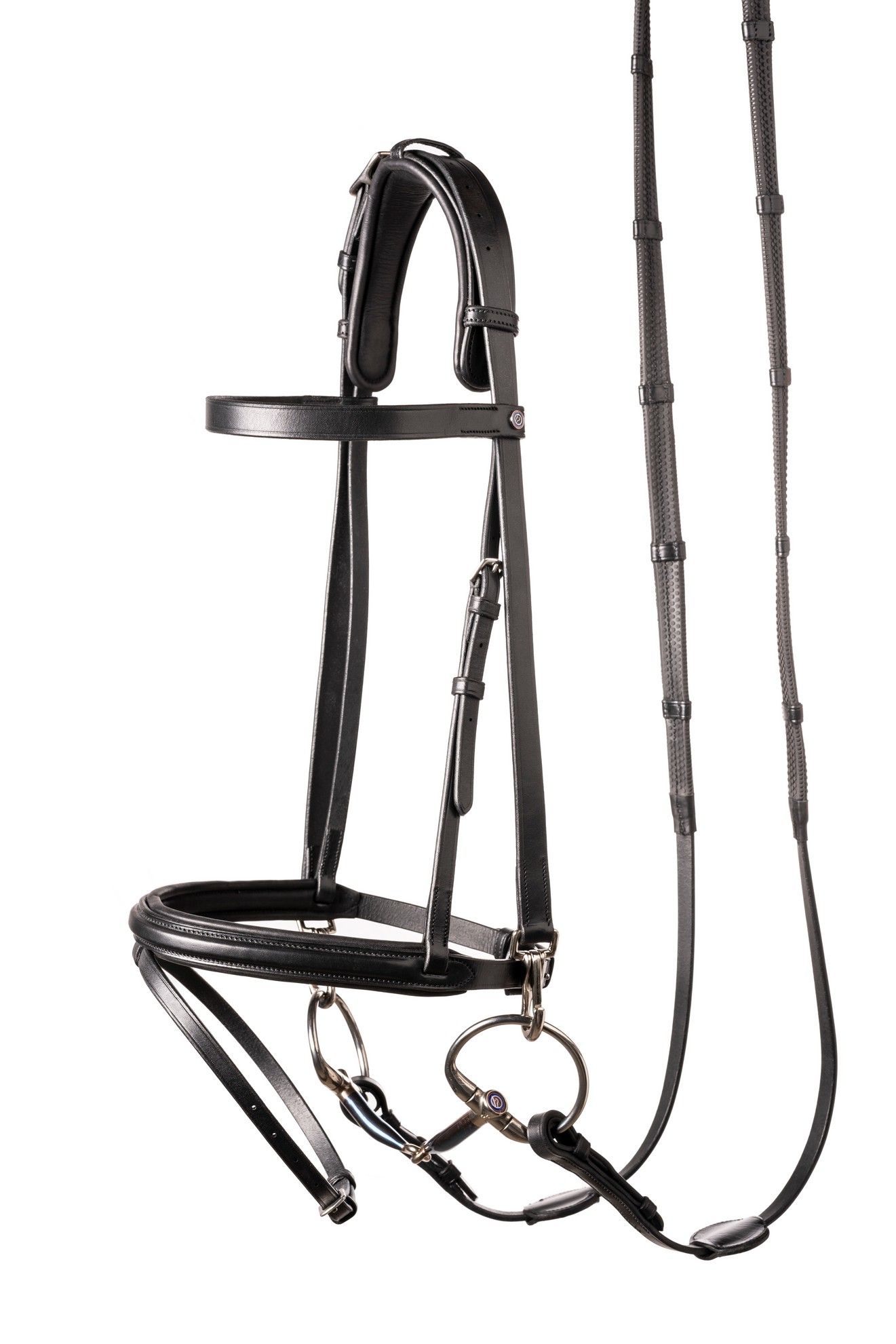 Trense Hamburg, englisch kombiniert, mit Zügel