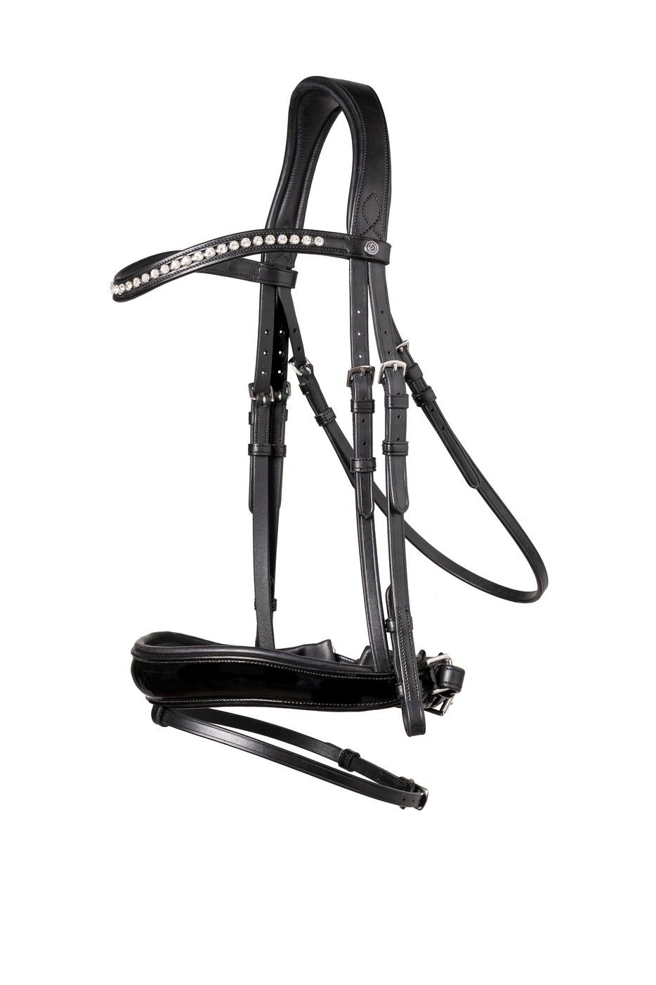 - Leicht gebogener Stirnriemen mit Stellux™-Kristallen: Die Kristalle sind sicher im Leder eingefasst und verleihen der Trense einen stilvollen Akzent.