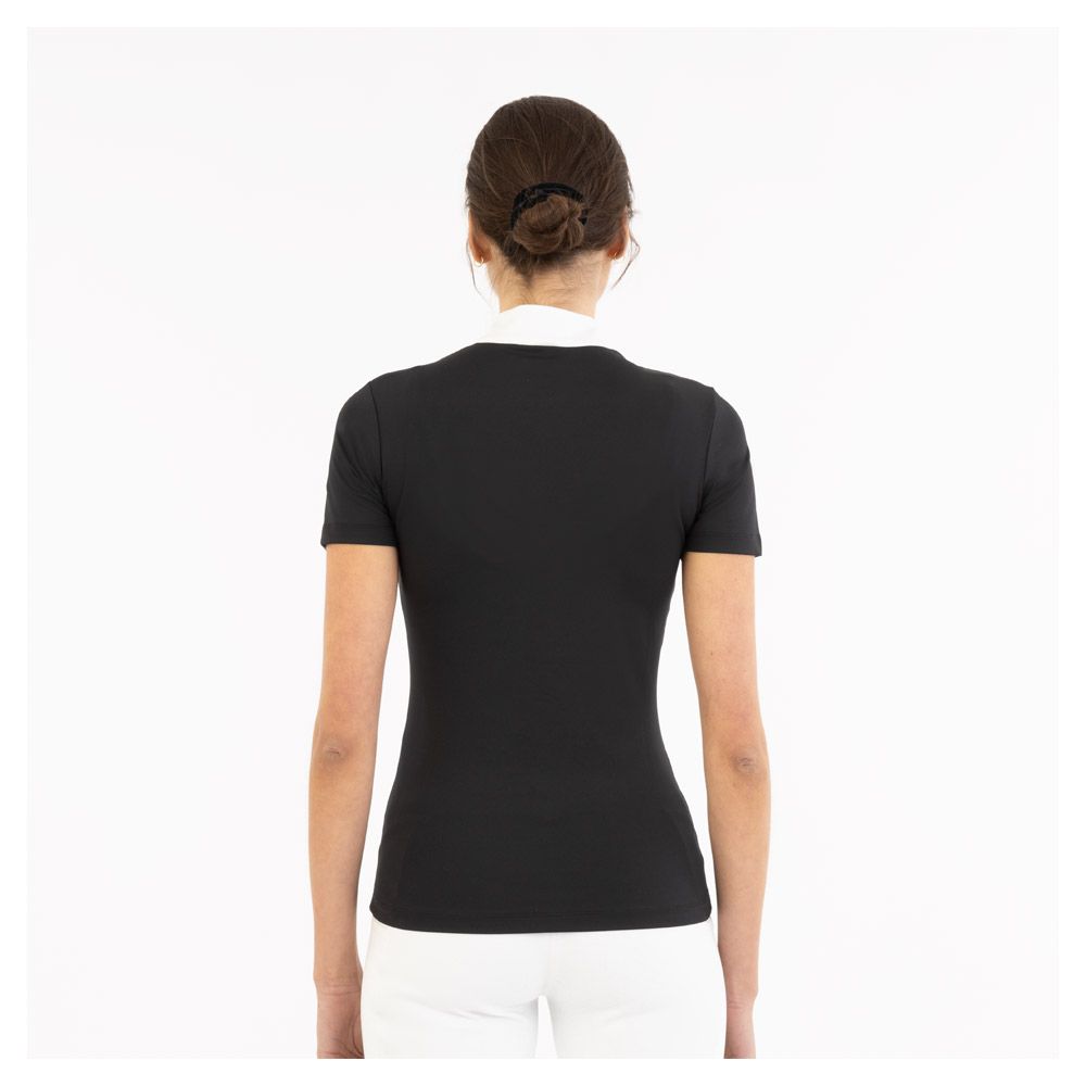 Das BR Turnierhemd Isabel vereint elegantes Design mit höchstem Komfort. Durch die taillierte, geformte Passform und das hochwertige Funktionsmaterial bleiben Sie selbst an heißen Turniertagen kühl und bequem. Die Glitzerlinien auf der Vorderseite sowie der verdeckte Frontreißverschluss mit Glitzer-Detail am Kragen verleihen diesem Hemd eine besonders edle Note.