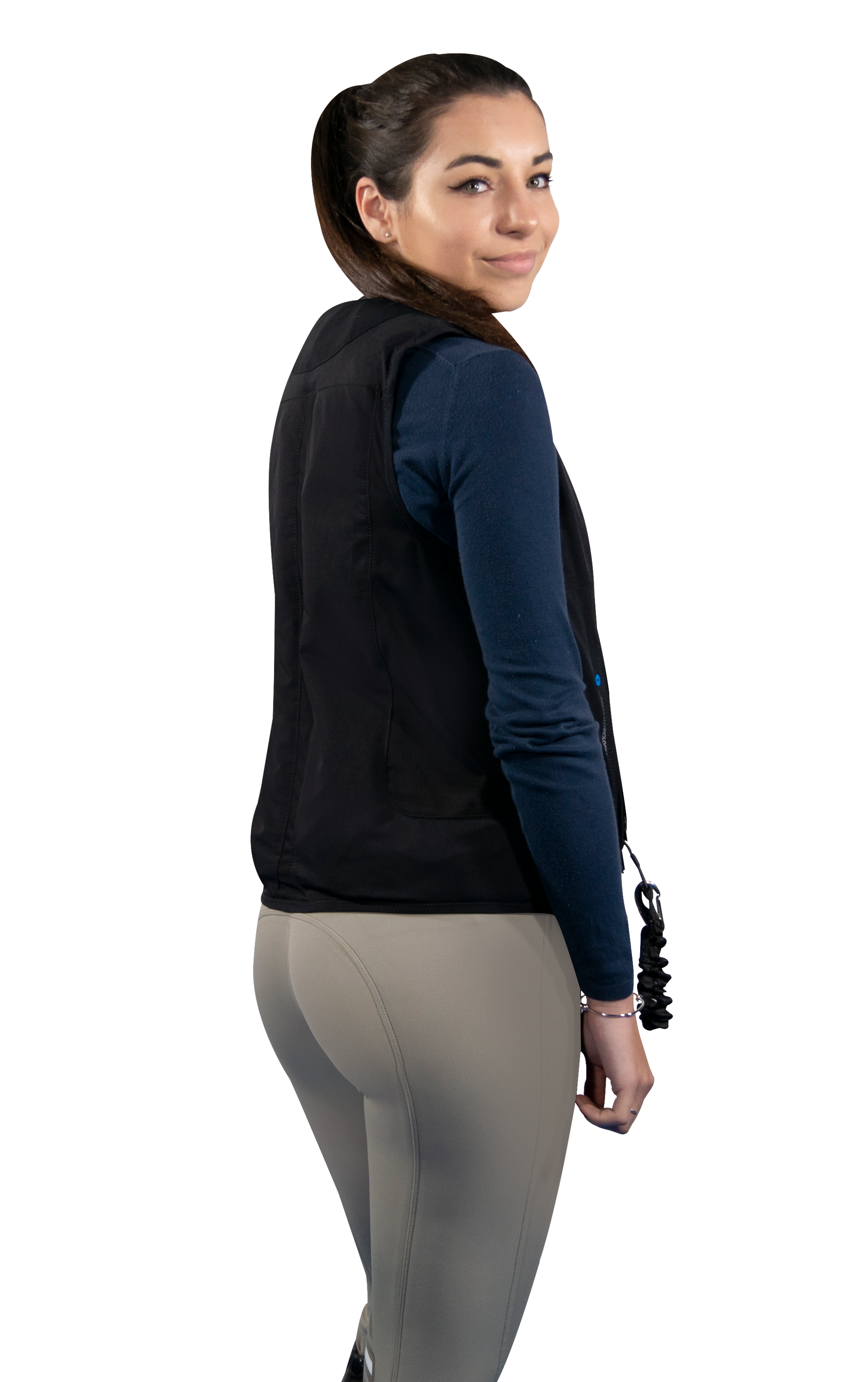 - Einfaches Befestigen: Die Weste wird mithilfe einer Reißleine am Sattel befestigt.